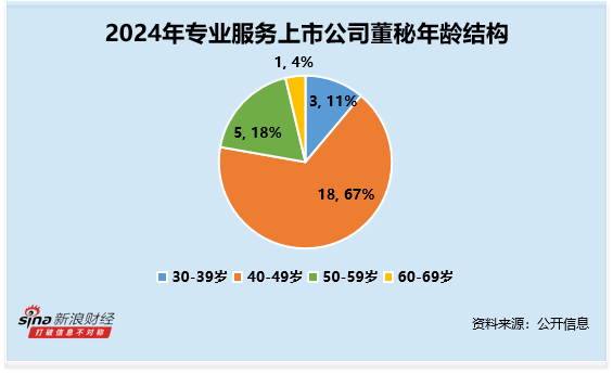 从年龄结构来看,董秘的年龄平均数约为46.33岁,其中40-49岁最多,人数共18人,占比约67%。其中,年龄最大的为信测标准蔡大贵,年龄为60岁,2024年薪酬为30.25万元;年龄最小的为苏试试验骆星烁,年龄为37岁,2024年薪酬为60万元。